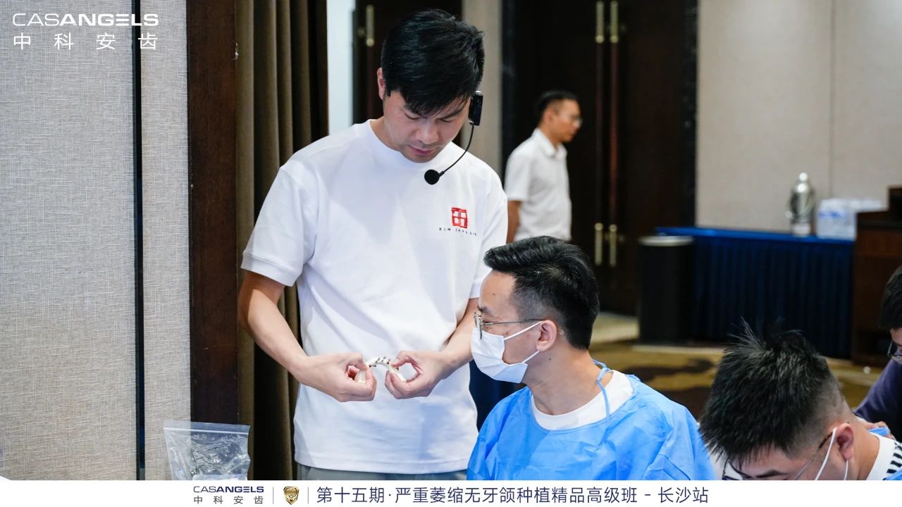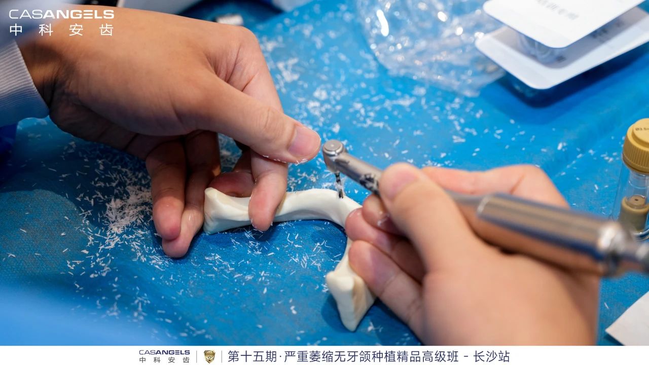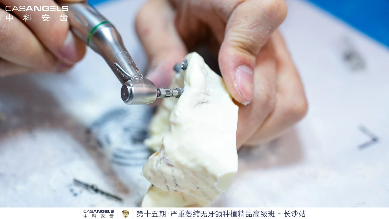 理论落地实操,聚焦无牙颌种植疑难挑战。学员们在吕昊昕院长的指导下,围绕穿翼手术模型操作、取模实操反复演练。