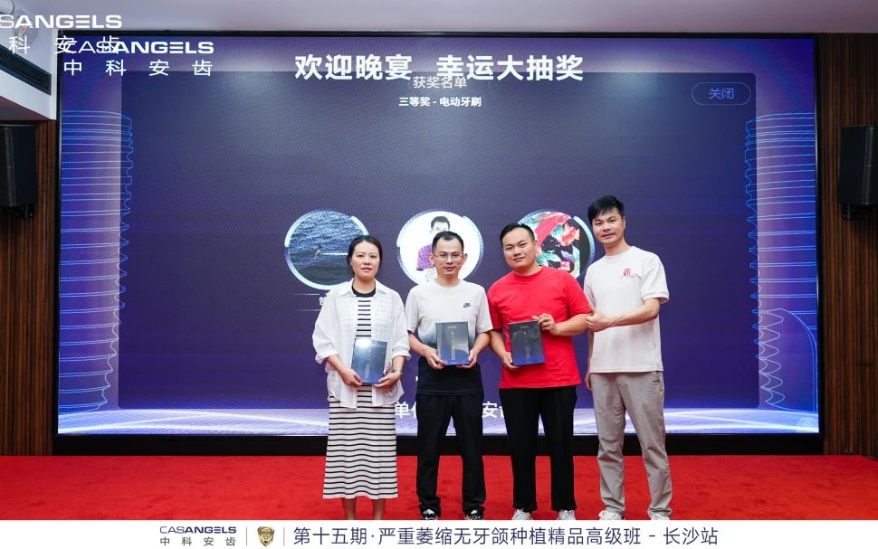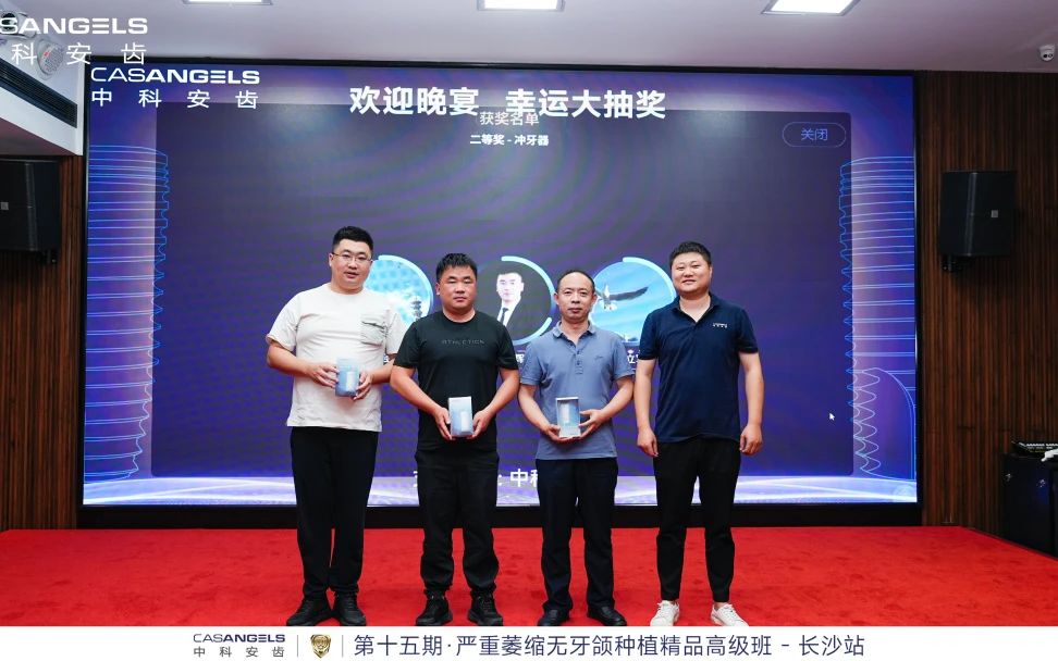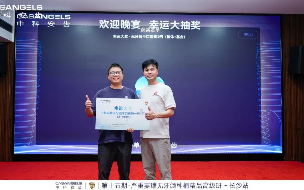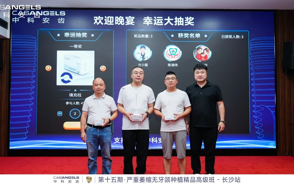 晚宴既是知识交流的延伸场:学员们围坐分享学习心得,碰撞临床思路;也是惊喜抽奖的欢乐局:无牙颌半口套餐、基台螺丝通道填充柱、便携式冲牙器、电动牙刷等丰厚奖品接连送出,幸运中奖学员直呼知识与福利双丰收。