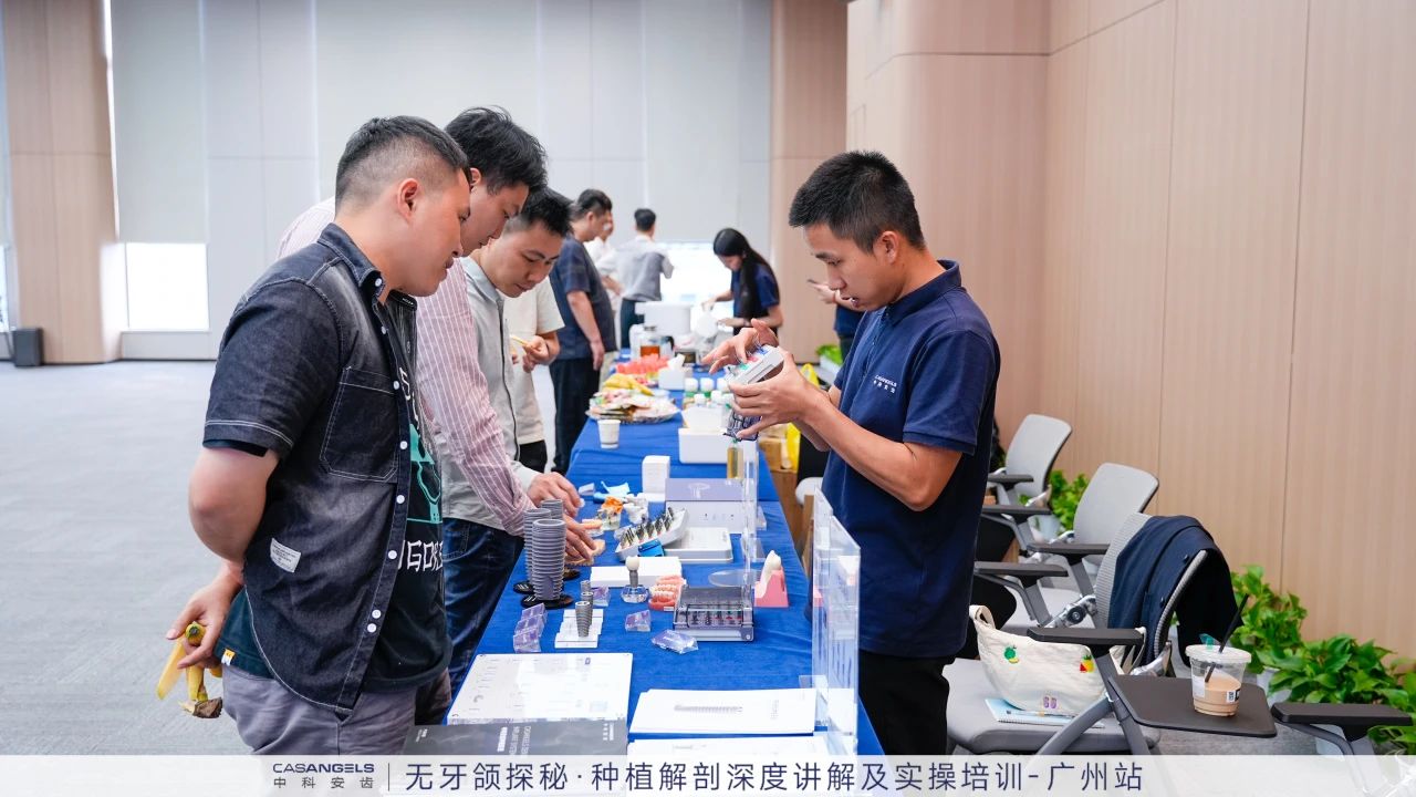 实操环节中,学员们进行无牙颌平行度把控、扭力与骨质极差精准判断等模型操作,以及无牙颌种植和基台安装倾斜角度练习,对关键技术点反复演练。
