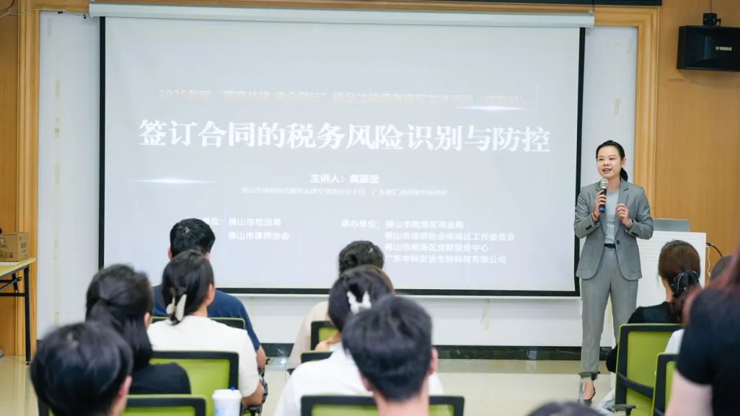 为进一步深化党建与业务融合,推动法治营商环境建设,4 月 23 日下午,由佛山市司法局、佛山市律师协会联合主办,佛山市南海区司法局、佛山市律师协会南海区工作委员会、佛山市南海区党群服务中心以及广东中科安齿生物科技有限公司共同承办的 2025 年度 “营商共建 律企同行” 精品法律服务课程(南海站)在中科安齿公司顺利举办。本次活动以 “签订合同的税务风险识别与防控” 为主题,吸引了来自公司各部门的40余位员工参训。